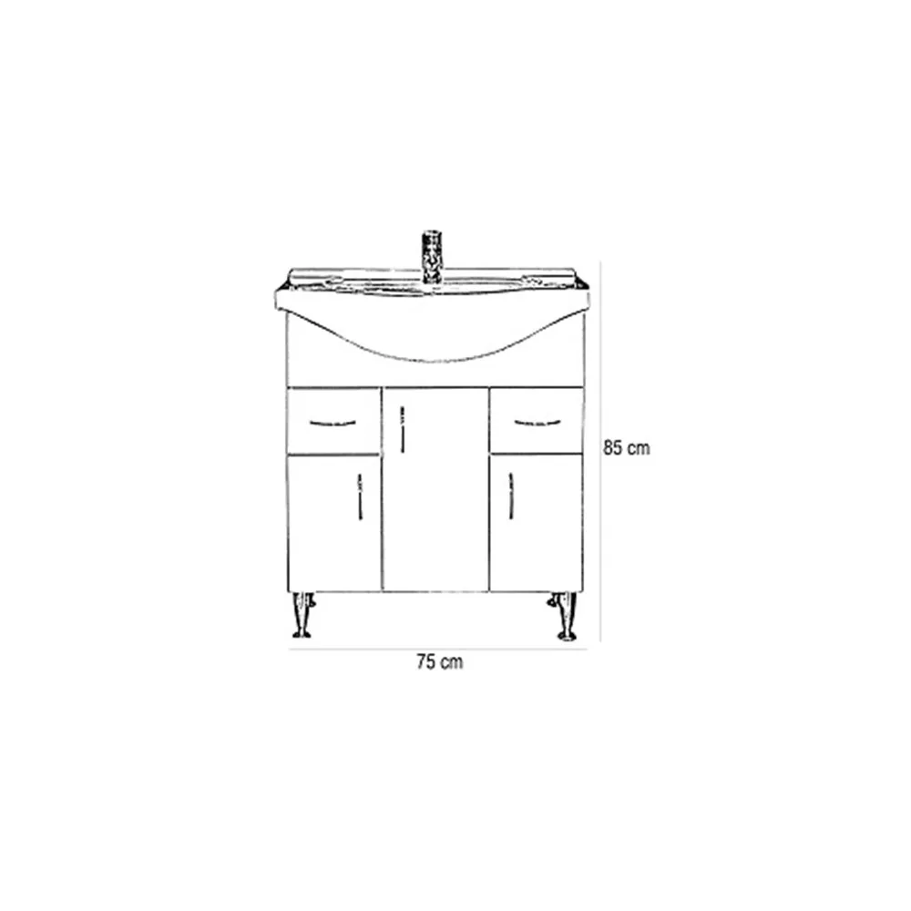 Das Badmöbel nimmt wenig Platz ein, verfügt aber über einen geräumigen Schrank und eine Schublade , in denen Sie Ihre Badutensilien bequem unterbringen können . Durch seine geringe Stellflächeeignet es sich auch für kleinere Bäder, zum Beispiel in Plattenbauwohnungen. Das Produkt ist aus einer hochwertigen Möbelplatte gefertigt und wird mit farblich abgestimmten Kantenverschlüssen geliefert. Das Badmöbel ist mit einem Waschbecken erhältlich .