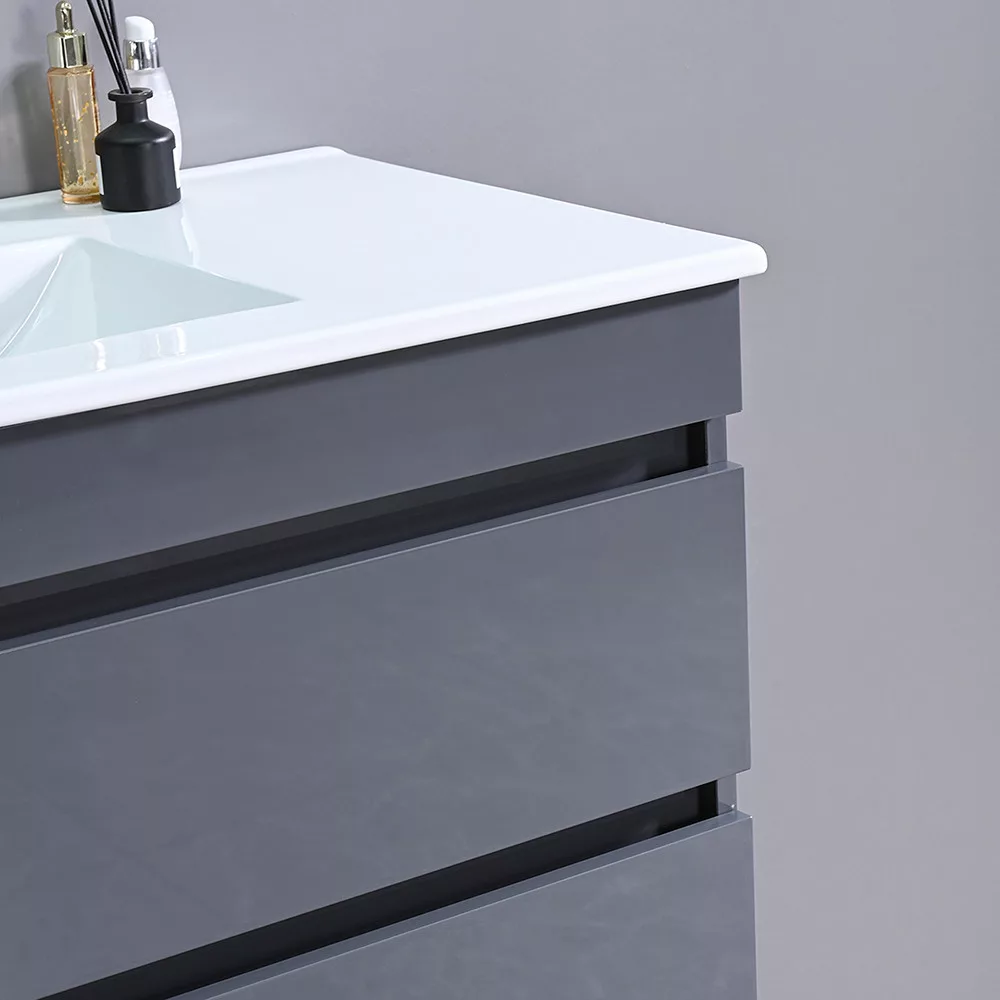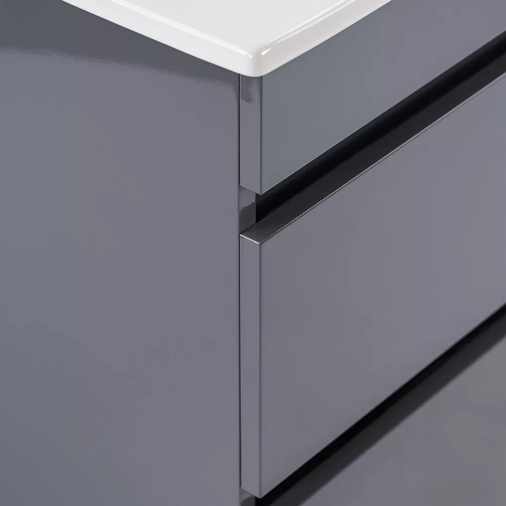 Neben der Funktionalität wurde natürlich auch dem Aussehen des Möbels große Aufmerksamkeit gewidmet . Dank seiner hochglänzenden anthrazitgrauen Farbe und seiner klaren, modernen Linien schafft es eine harmonische Atmosphäre in jedem Badezimmer.
