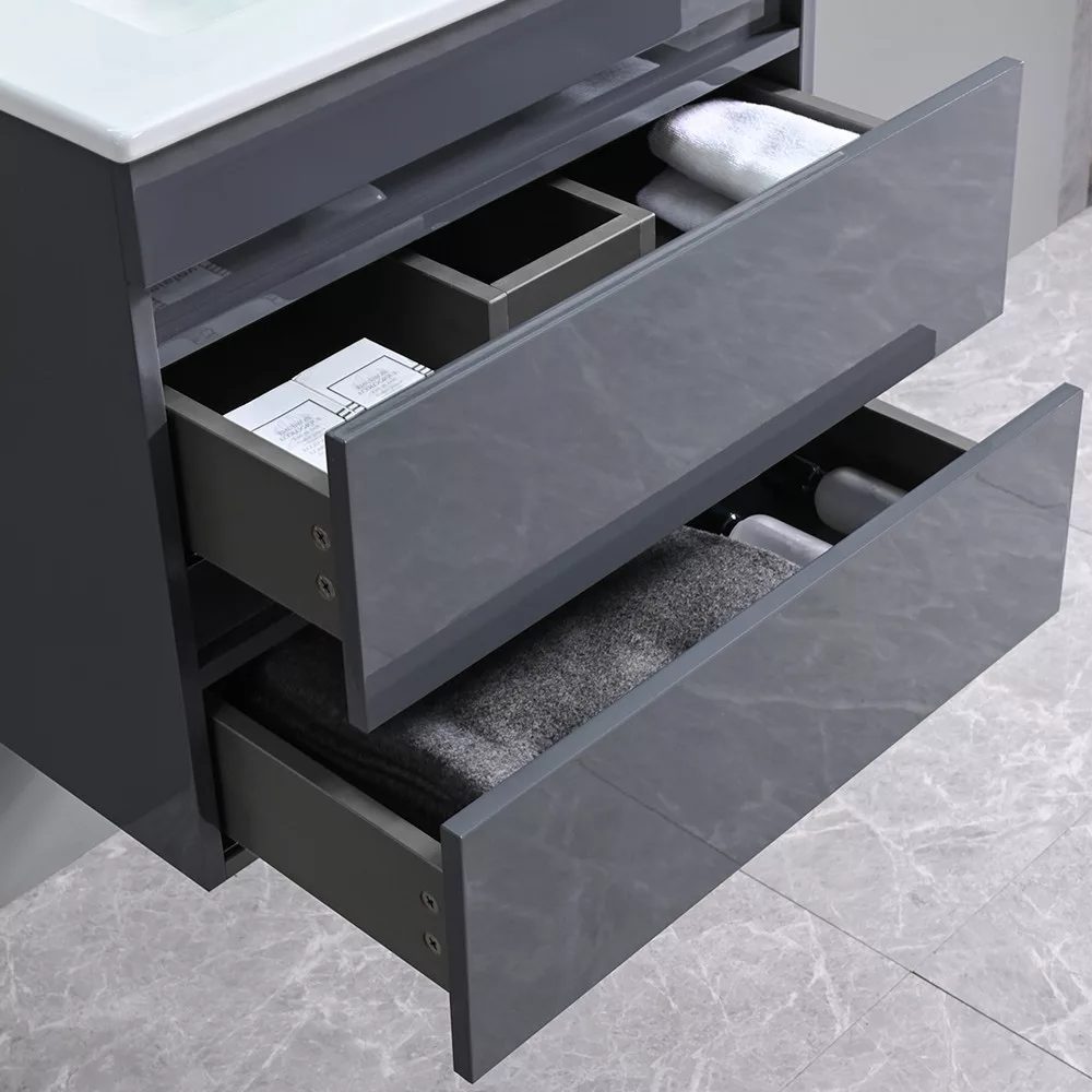 Neben der Funktionalität wurde natürlich auch dem Aussehen des Möbels große Aufmerksamkeit gewidmet . Dank seiner hochglänzenden anthrazitgrauen Farbe und seiner klaren, modernen Linien schafft es eine harmonische Atmosphäre in jedem Badezimmer.