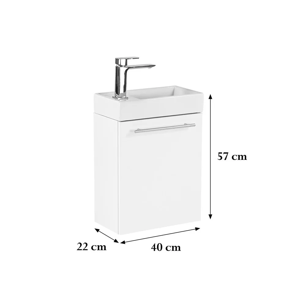 Die kompakten Abmessungen des Möbels (40x57x22 cm) machen es ideal für jedes Bad, ob klein oder groß. Dank seines niedrigen Profils nimmt es nicht viel Platz in Anspruch, bietet aber dennoch ausreichend Stauraum.
