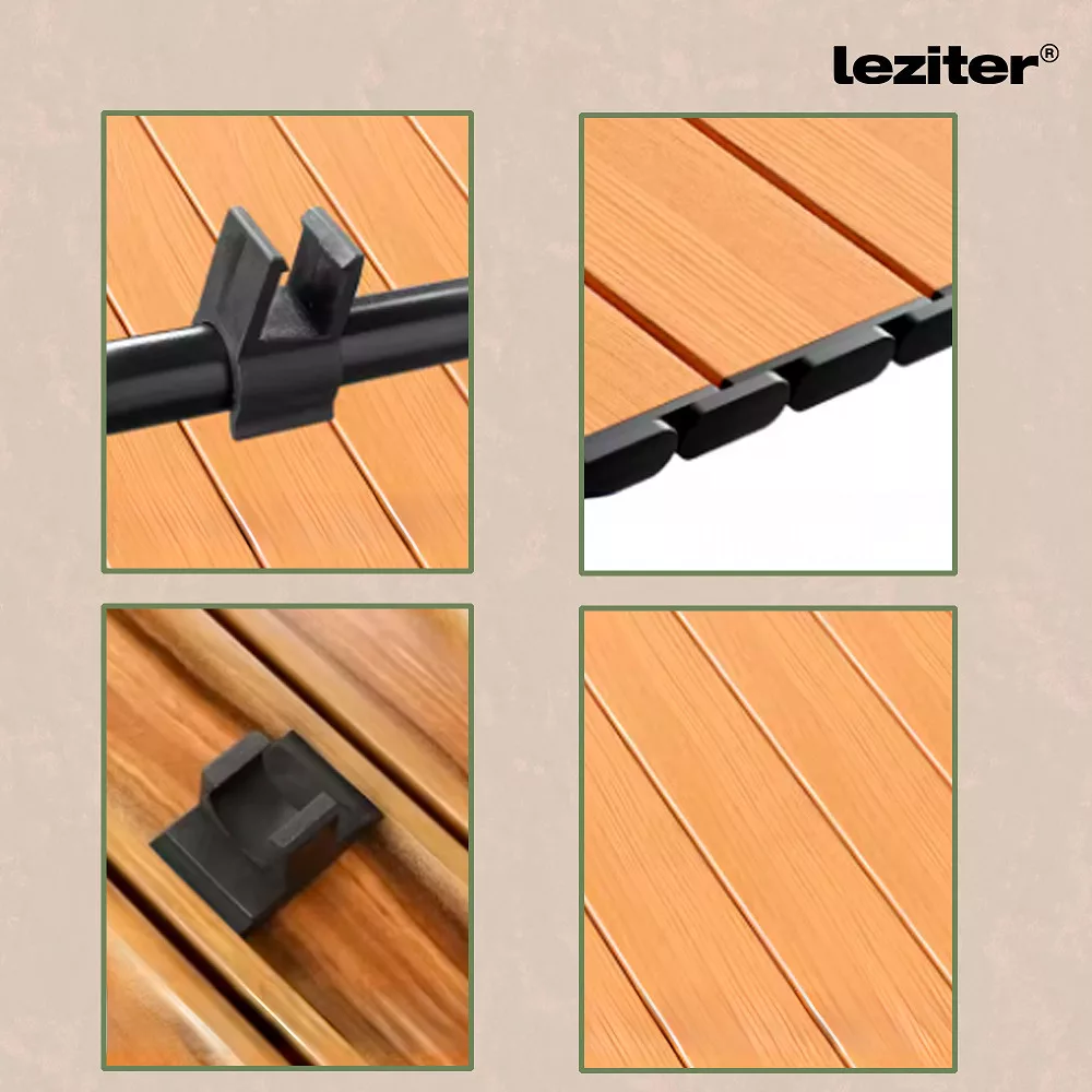- Material: 600D Oxford-Gewebe, schwarz lackierter Eisenrahmen, Tischplatte in Holzoptik mit Stahlrahmen