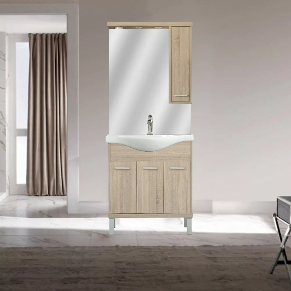 Das Badmöbel nimmt wenig Platz ein, verfügt aber über einen geräumigen Schrank , in dem Sie bequem Ihre Badutensilien unterbringen können . Durch seine geringe Stellflächeeignet er sich auch für kleinere Bäder, zum Beispiel in Plattenbauten. Das Produkt ist aus einer hochwertigen Möbelplatte gefertigt und wird mit farblich abgestimmten Kantenverschlüssen geliefert. Das Badmöbel ist mit einem Waschbecken erhältlich .