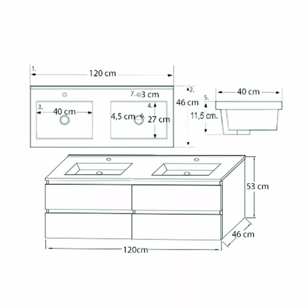 Das Paket enthält auch ein größenmäßig passendes Keramikwaschbecken, so dass Sie dieses nicht separat kaufen müssen. Der Waschtisch ist aus hochwertiger Keramik gefertigt, um eine lange Lebensdauer zu garantieren. Das Doppelwaschbecken mit tiefem Becken bietet Platz für zwei Wasserhähne. Das macht zu einer idealen Wahl für größere Familien , da man sich nicht anstellen muss, um sich die Hände zu waschen.