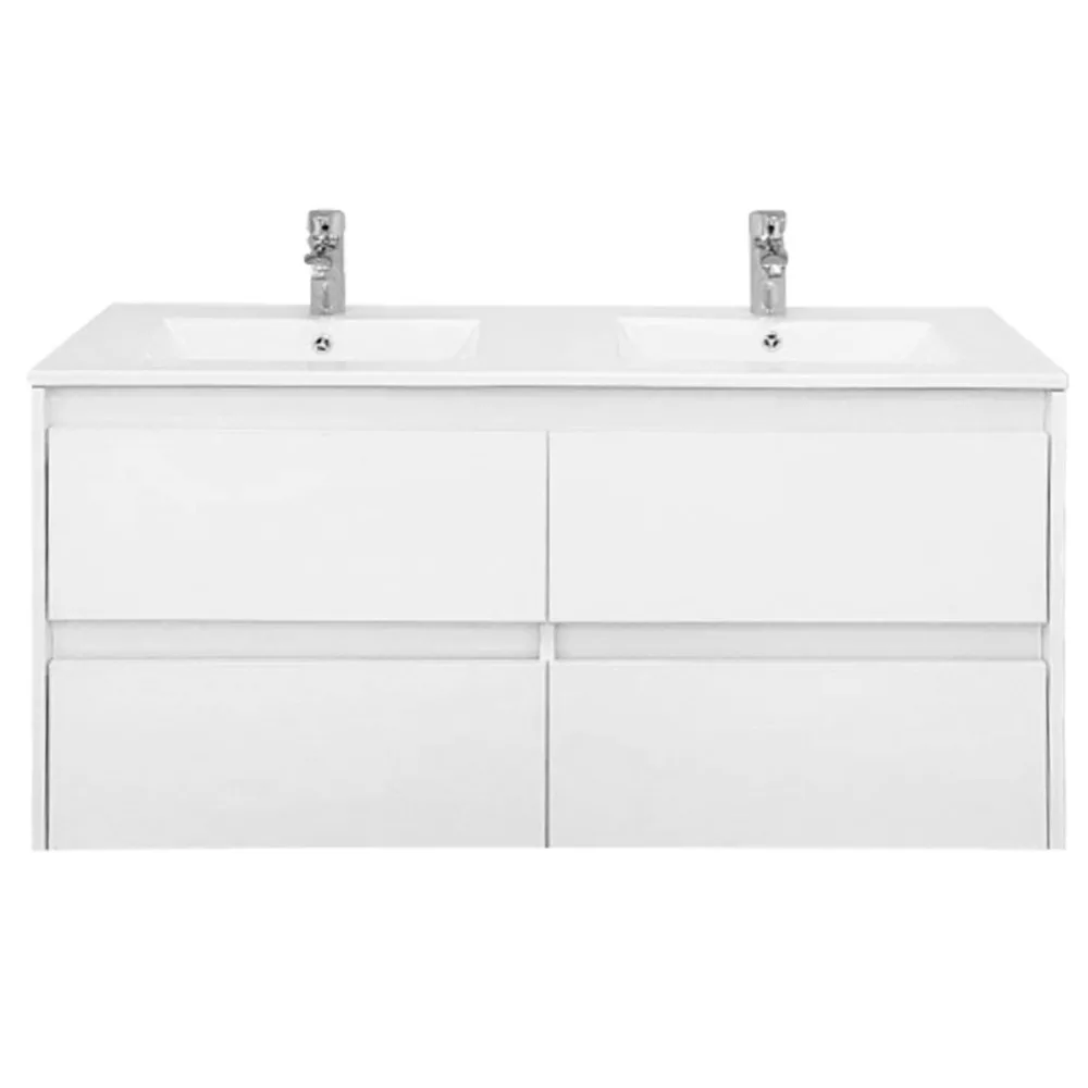 Das Paket enthält auch ein größenmäßig passendes Keramik-Waschbecken , das Sie nicht separat kaufen müssen. Der Waschtisch ist aus hochwertiger Keramik gefertigt, die eine lange Lebensdauer garantiert. Das Doppelwaschtischbecken mit tiefen Becken bietet Platz für zwei Armaturen. Das macht zu einer idealen Wahl für größere Familien , da man beim Händewaschen nicht Schlange stehen muss.