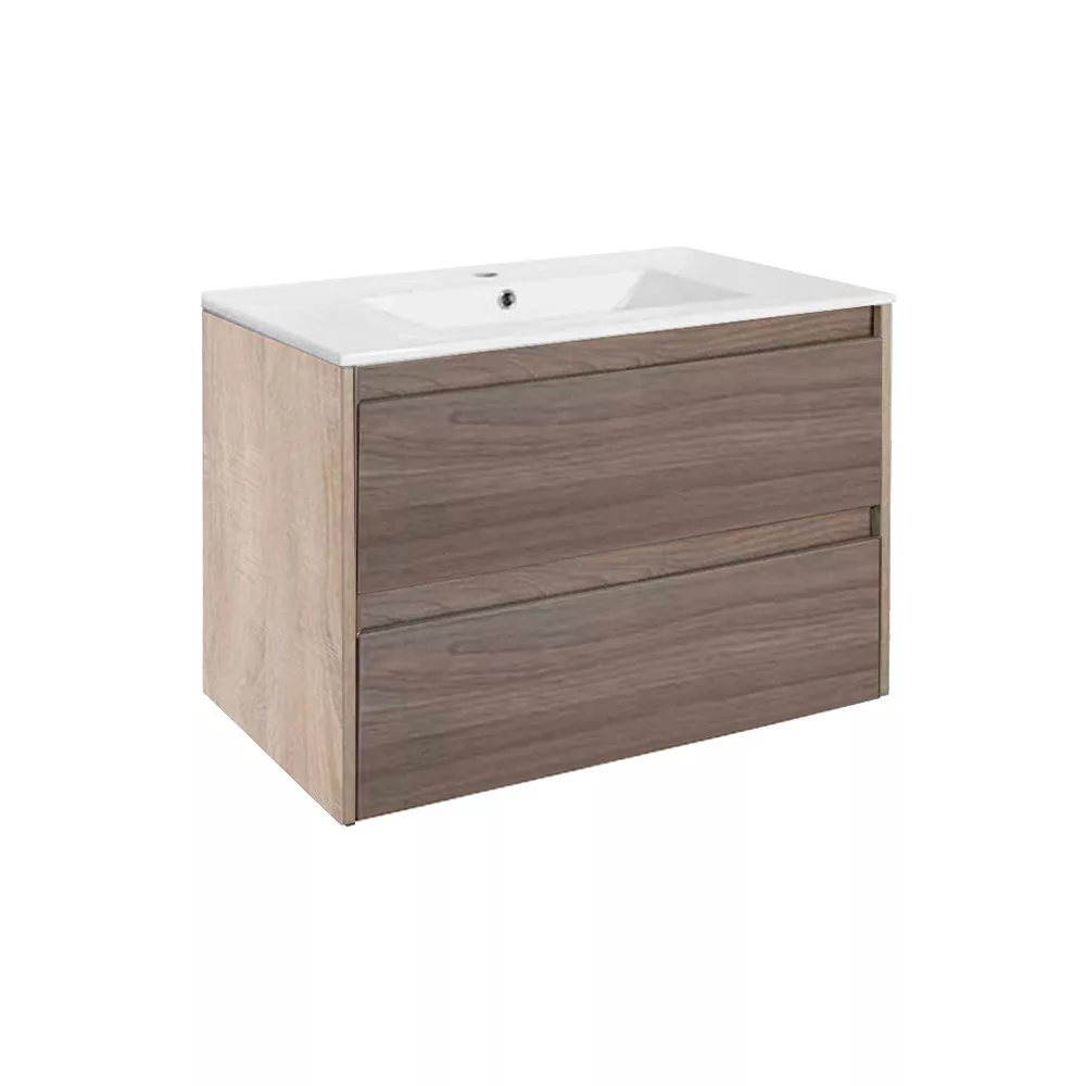 Zum Paket gehört auch ein Keramikwaschbecken mit tiefem Becken in Weiß, das perfekt auf das Möbelstück passt und einen Platz für einen Wasserhahn hat. Sie brauchen also nicht nach einem passenden Waschbecken zu suchen - das Paket enthält alles, was Sie dazu brauchen (außer dem Wasserhahn).