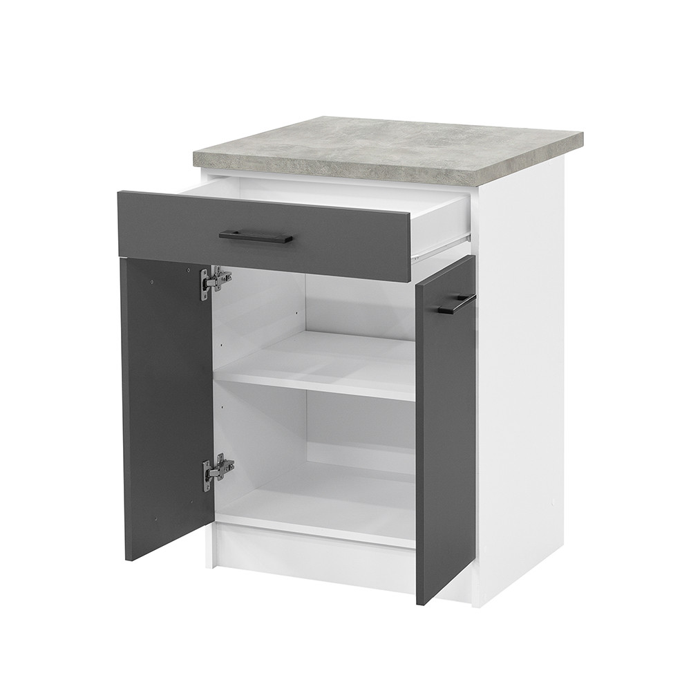 Praktik 60 Unterschrank 2 Türen 1 Schublade - Korpus weiß, Front anthrazit