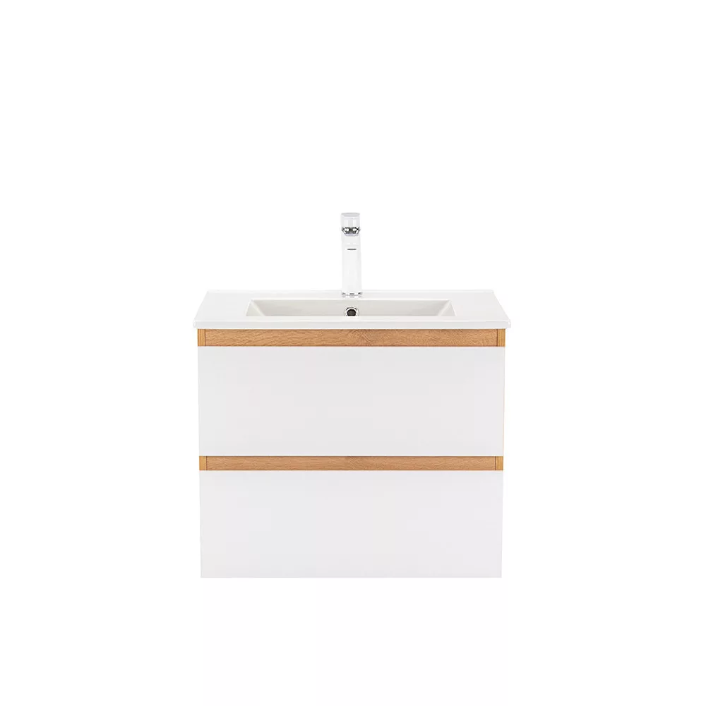 Das komplette Badmöbel Vario Forte 60 ist eine stilvolle und praktische Wahl für moderne Bäder. Seine kompakten Abmessungen machen ihn ideal für kleine bis mittelgroße Bäder, der 45-Grad-Kantenabschluss sorgt für einen modernen Effekt und das Design in Eiche und Weiß verleiht dem Raum ein stilvolles Aussehen. Der gedämpfte Schubladenverschluss und das hängende Design bieten Komfort und einfache Reinigung, während die hochwertigen Materialien eine lange Lebensdauer gewährleisten.