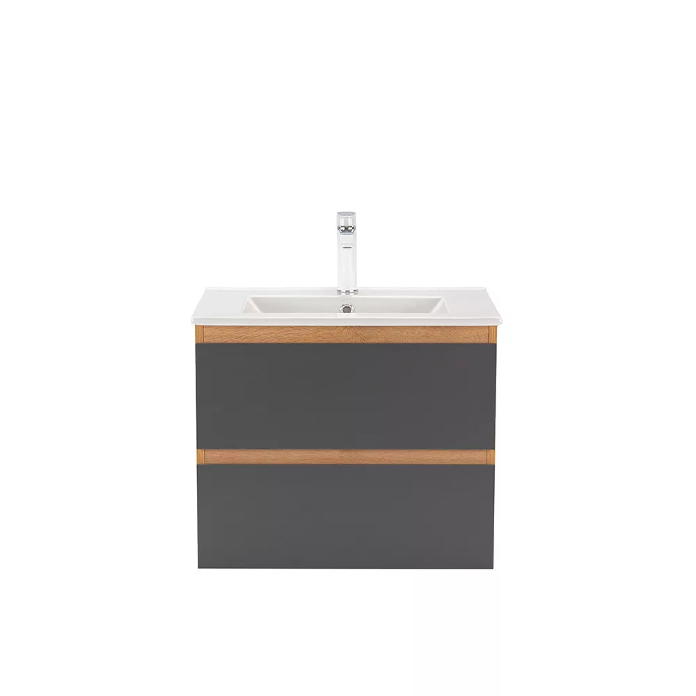 Das komplette Badmöbel Vario Forte 60 ist eine stilvolle und praktische Wahl für moderne Bäder. Seine kompakten Abmessungen machen ihn ideal für kleine bis mittelgroße Bäder, der 45-Grad-Kantenabschluss sorgt für einen modernen Effekt und das Eiche-Anthrazit-Design verleiht dem Raum einen eleganten Look. Der gedämpfte Schubladenverschluss und das hängende Design sorgen für Komfort und einfache Reinigung, während die hochwertigen Materialien eine lange Lebensdauer garantieren.