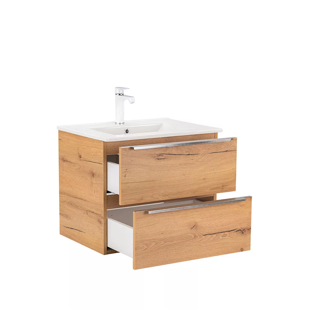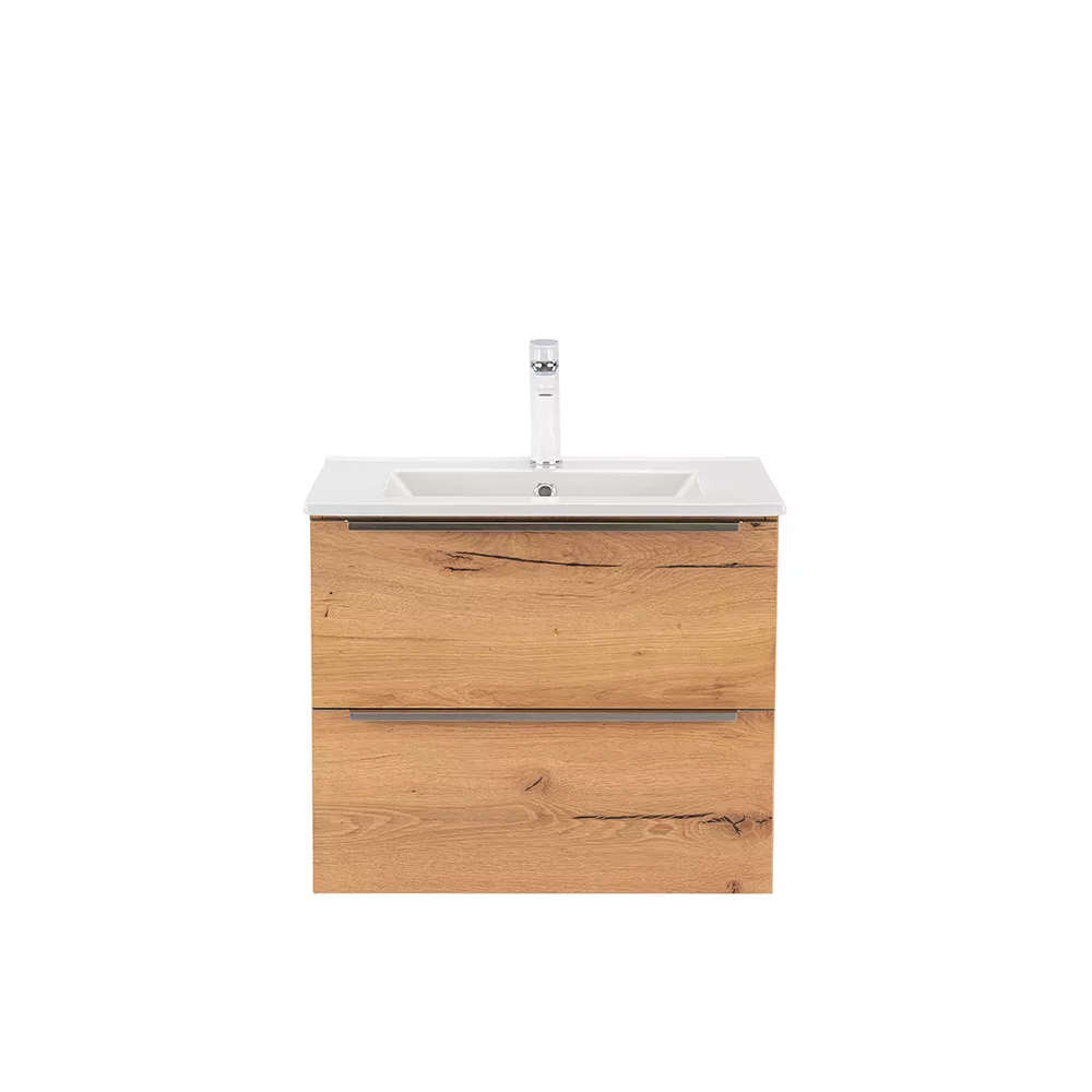 Das komplette Badmöbel Vario Trim 60 ist eine stilvolle und praktische Wahl für moderne Bäder. Dank seiner kompakten Abmessungen eignet er sich ideal für kleine bis mittelgroße Bäder. Das Griffprofil aus Metall sorgt für einen Patina-Effekt, während die Farbgestaltung in Eiche-Eiche dem Raum ein elegantes Aussehen verleiht. Der gedämpfte Schubladenverschluss und das hängende Design sorgen für Komfort und einfache Reinigung, während die hochwertigen Materialien eine lange Lebensdauer gewährleisten.