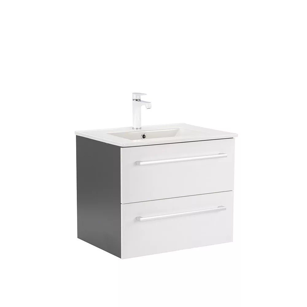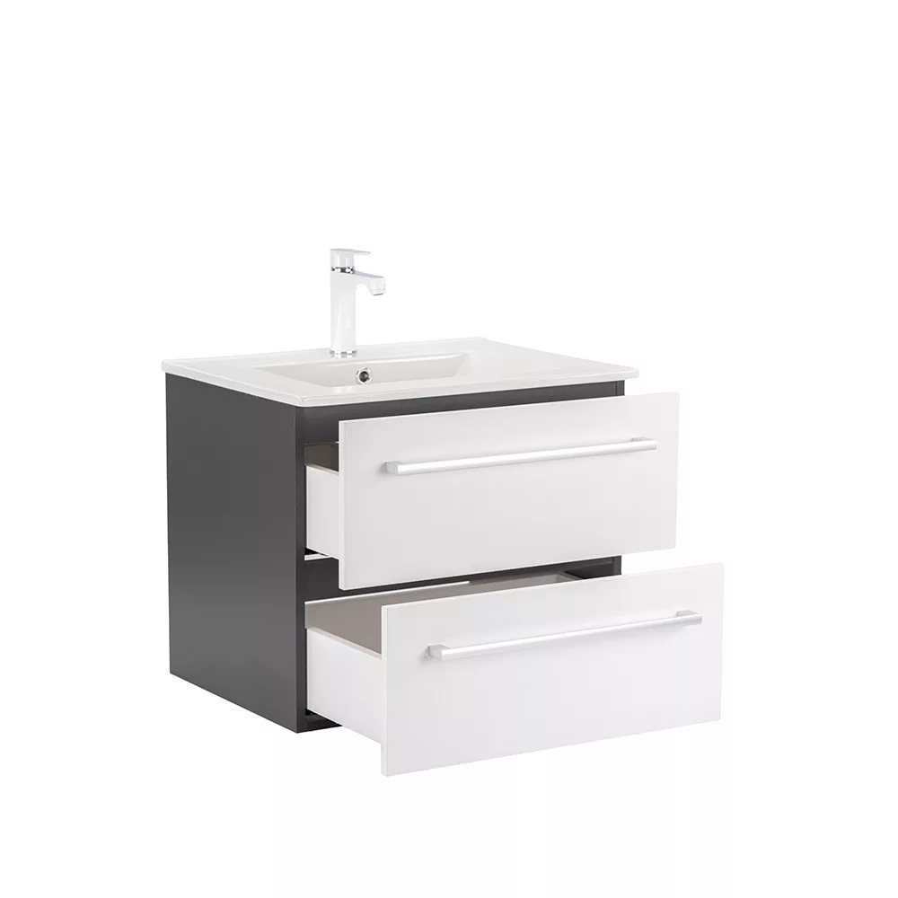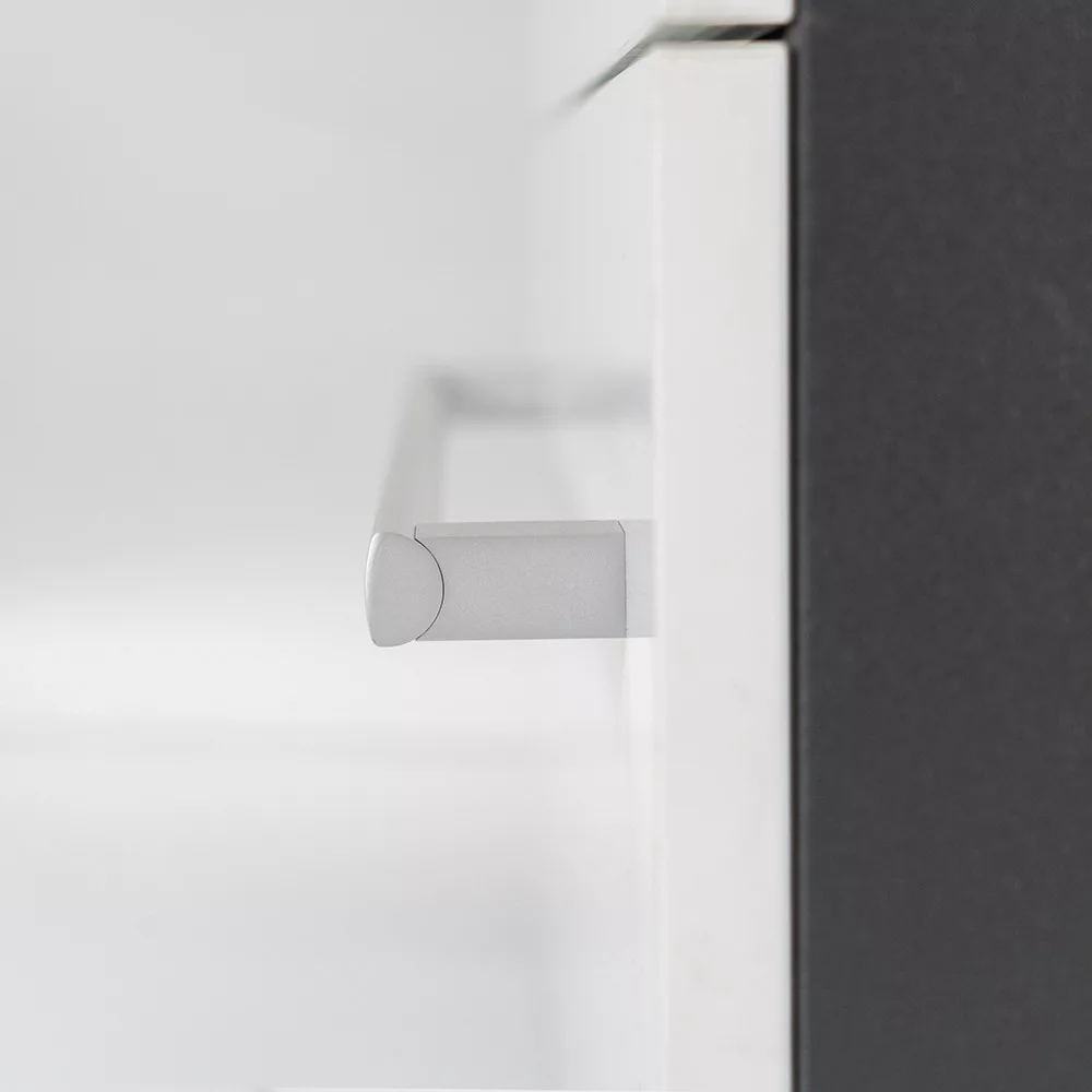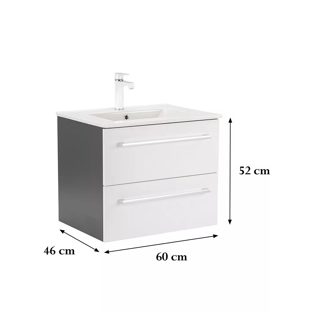 Der Unterschrank Vario Clam 60 ist eine stilvolle und praktische Wahl für moderne Bäder. Mit seinen kompakten Abmessungen ist er ideal für kleine bis mittelgroße Bäder. Das Griffprofil aus Metall verleiht ihm einen Patina-Effekt, während das anthrazit-weiße Design dem Raum einen eleganten Look verleiht. Der gedämpfte Schubladenverschluss und das hängende Design sorgen für Komfort und einfache Reinigung, während die hochwertigen Materialien eine lange Lebensdauer gewährleisten.
