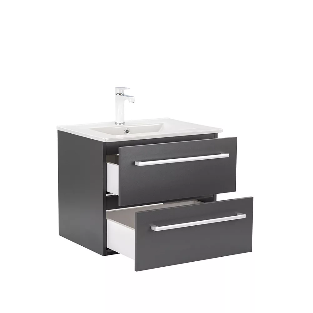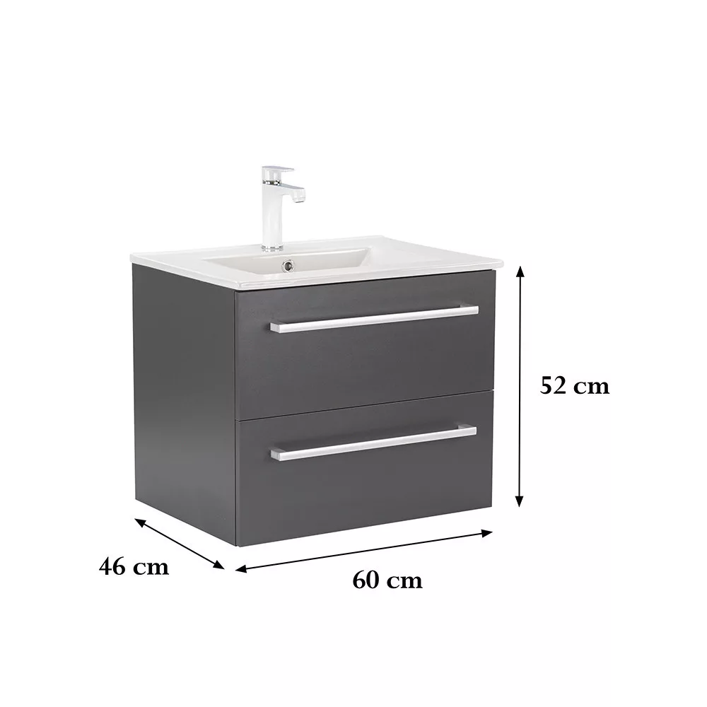 Der Unterschrank Vario Clam 60 ist eine stilvolle und praktische Wahl für moderne Bäder. Mit seinen kompakten Abmessungen ist er ideal für kleine bis mittelgroße Bäder. Das Griffprofil aus Metall sorgt für einen Patina-Effekt, während das anthrazit-anthrazitfarbene Design dem Raum ein elegantes Aussehen verleiht. Der gedämpfte Schubladenverschluss und das hängende Design sorgen für Komfort und einfache Reinigung, während die hochwertigen Materialien eine lange Lebensdauer garantieren.