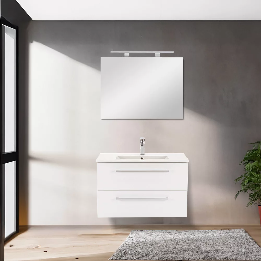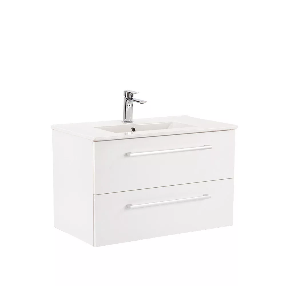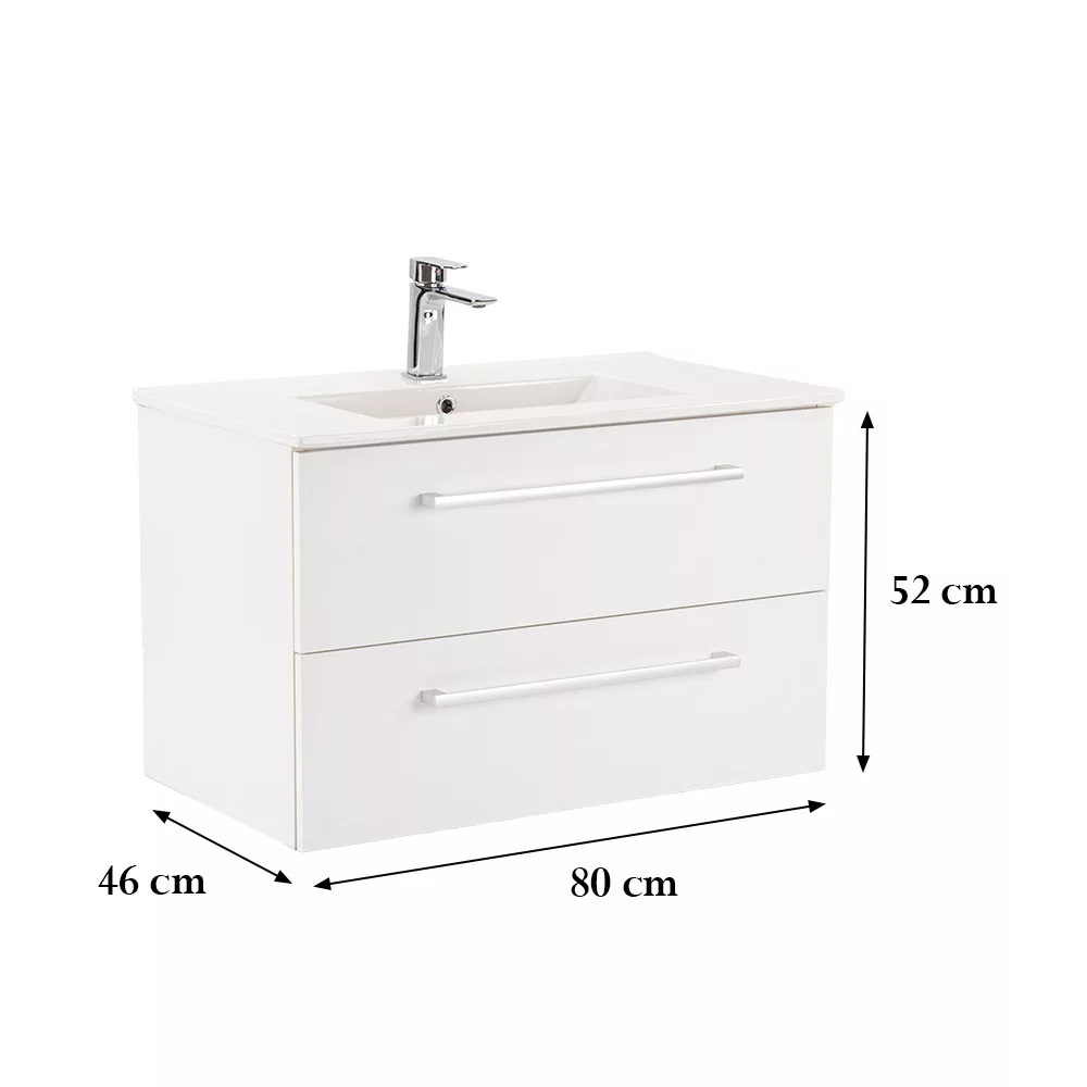 Der Unterschrank Vario Clam 80 ist eine stilvolle und praktische Wahl für moderne Bäder. Seine kompakten Abmessungen machen ihn ideal für kleine bis mittelgroße Bäder. Das Griffprofil aus Metall verleiht ihm einen Patina-Effekt, während das Weiß-auf-Weiß-Design dem Raum einen eleganten Look verleiht. Der gedämpfte Schubladenverschluss und das hängende Design sorgen für Komfort und einfache Reinigung, während die hochwertigen Materialien eine lange Lebensdauer garantieren.