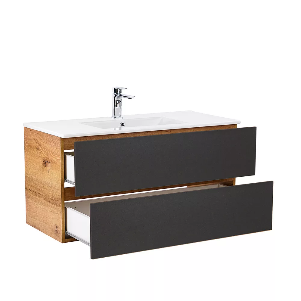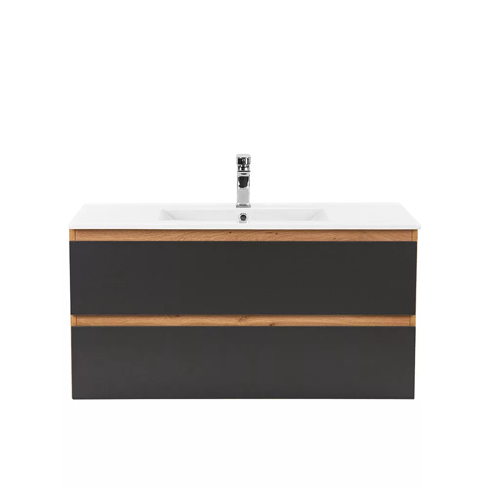 Vario Forte 100 Waschtischunterschrank mit Waschbecken in Eiche anthrazit - stilvolle und moderne Badmöbel