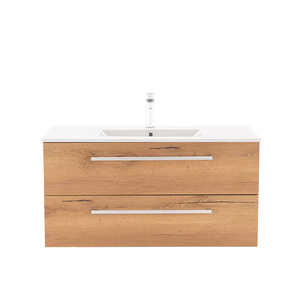 Der Unterschrank Vario Clam 100 ist eine stilvolle und praktische Wahl für moderne Bäder. Seine kompakten Abmessungen machen ihn ideal für kleine bis mittelgroße Bäder. Das Metallgriffprofil verleiht ihm einen Patina-Effekt, während das anthrazitfarbene Eichendesign dem Raum einen eleganten Look verleiht. Der gedämpfte Schubladenverschluss und das hängende Design sorgen für Komfort und einfache Reinigung, während die hochwertigen Materialien eine lange Lebensdauer gewährleisten.