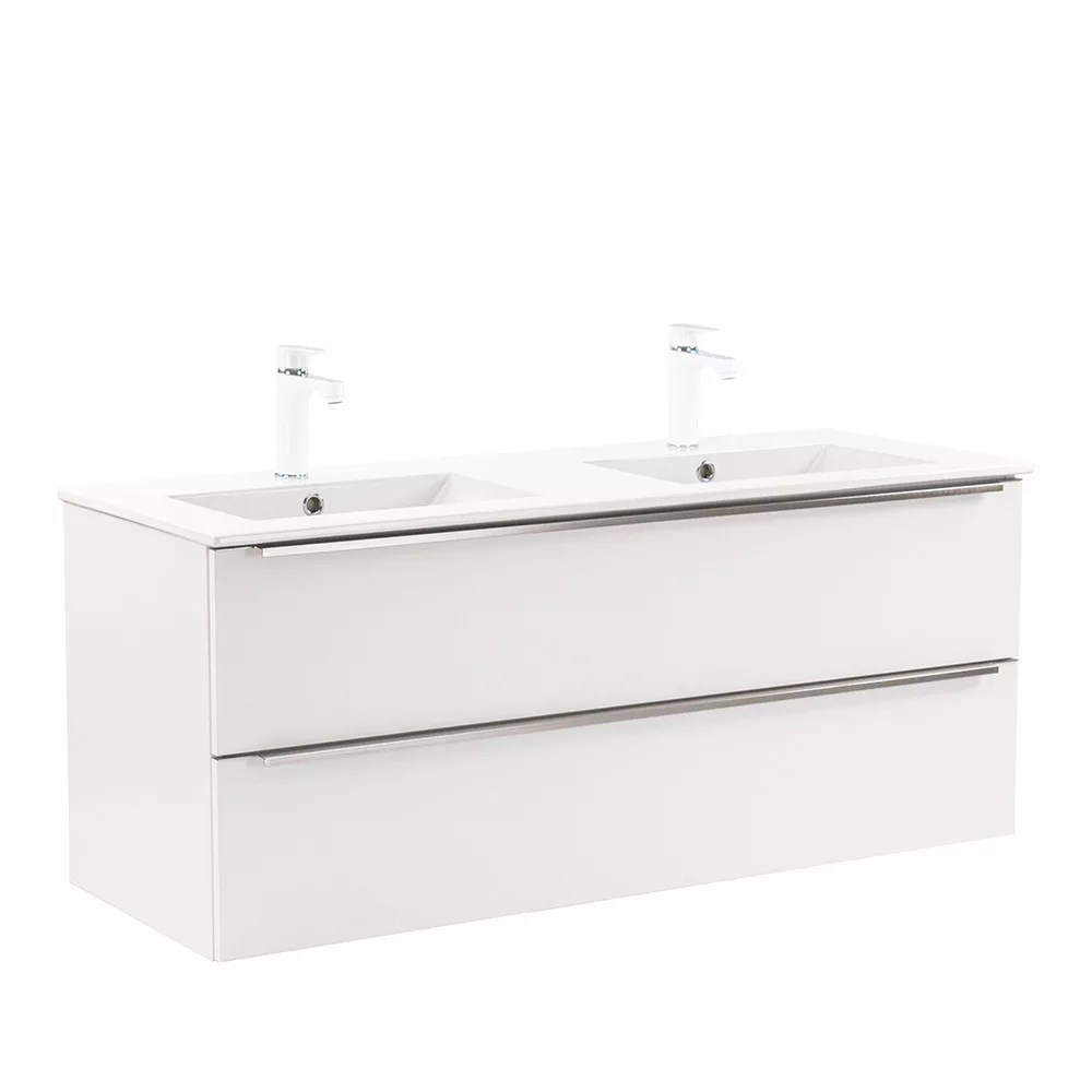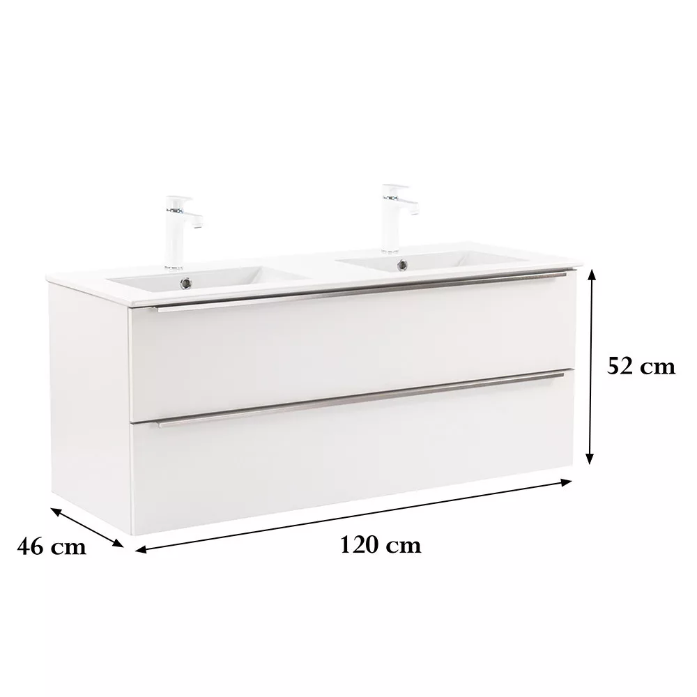 Das komplette Badmöbel Vario Trim 120 ist eine stilvolle und praktische Wahl für moderne Bäder. Dank seiner kompakten Abmessungen eignet er sich ideal für kleine bis mittelgroße Bäder. Das Griffprofil aus Metall verleiht dem Raum einen Patina-Effekt, während das Weiß-auf-Weiß-Design ihm einen eleganten Look verleiht. Der gedämpfte Schubladenverschluss und das hängende Design sorgen für Komfort und einfache Reinigung, während hochwertige Materialien eine lange Lebensdauer gewährleisten.