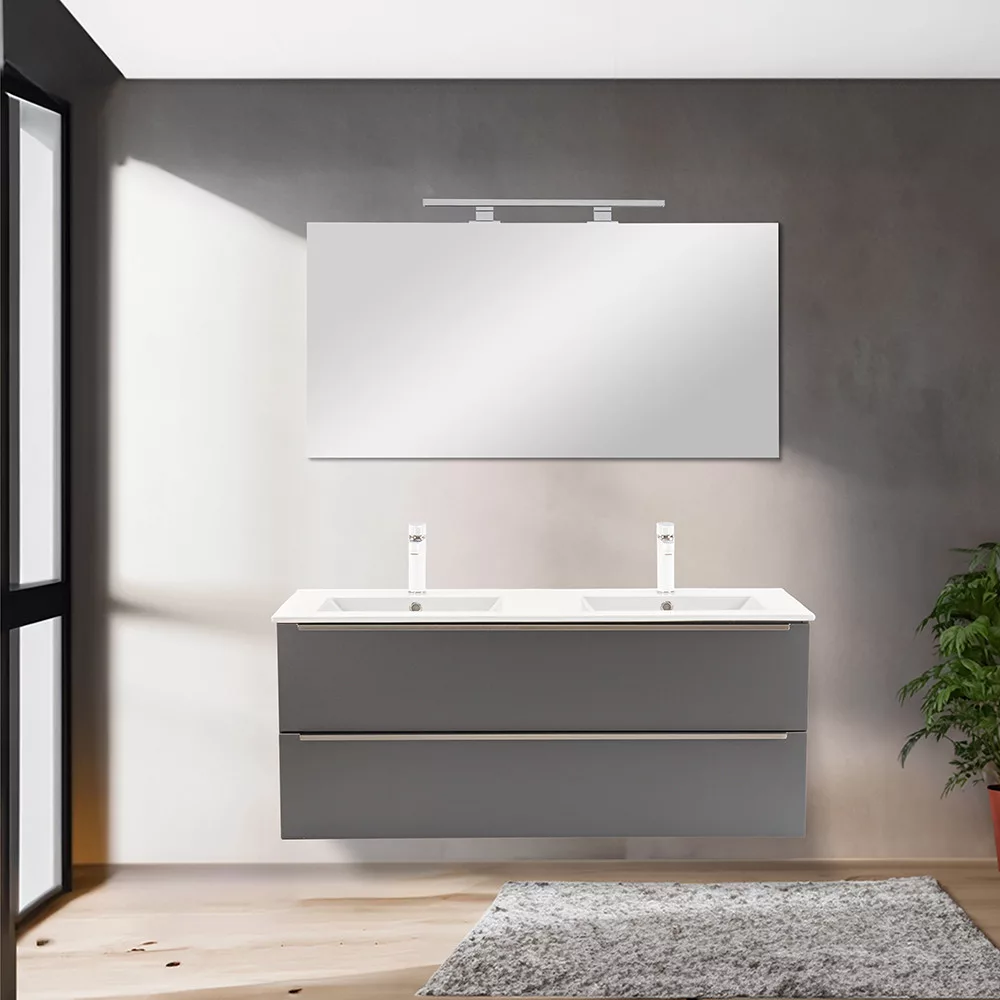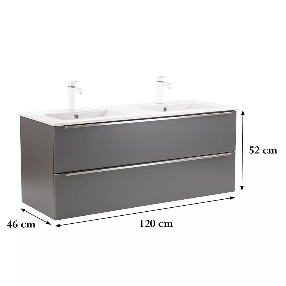 Das komplette Badmöbel Vario Trim 120 ist eine stilvolle und praktische Wahl für moderne Bäder. Dank seiner kompakten Abmessungen eignet er sich ideal für kleine bis mittelgroße Bäder. Das Griffprofil aus Metall sorgt für einen Patina-Effekt, während das anthrazit-anthrazitfarbene Design dem Raum einen eleganten Look verleiht. Der gedämpfte Schubladenverschluss und das hängende Design sorgen für Komfort und einfache Reinigung, während die hochwertigen Materialien eine lange Lebensdauer garantieren.