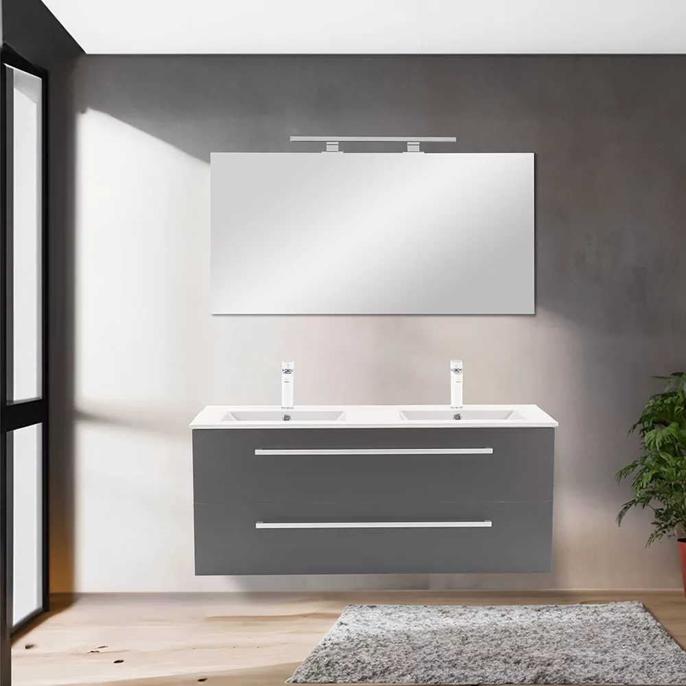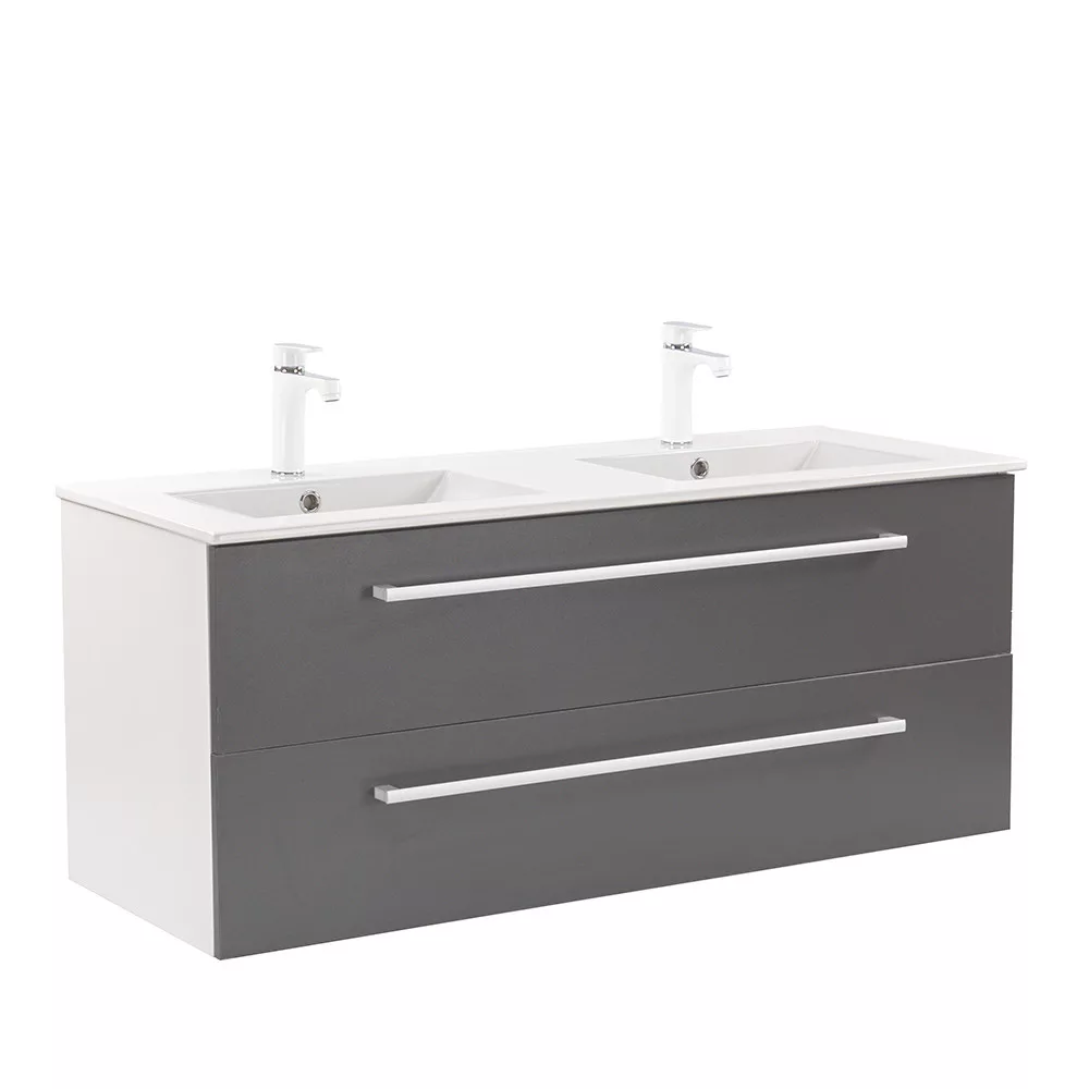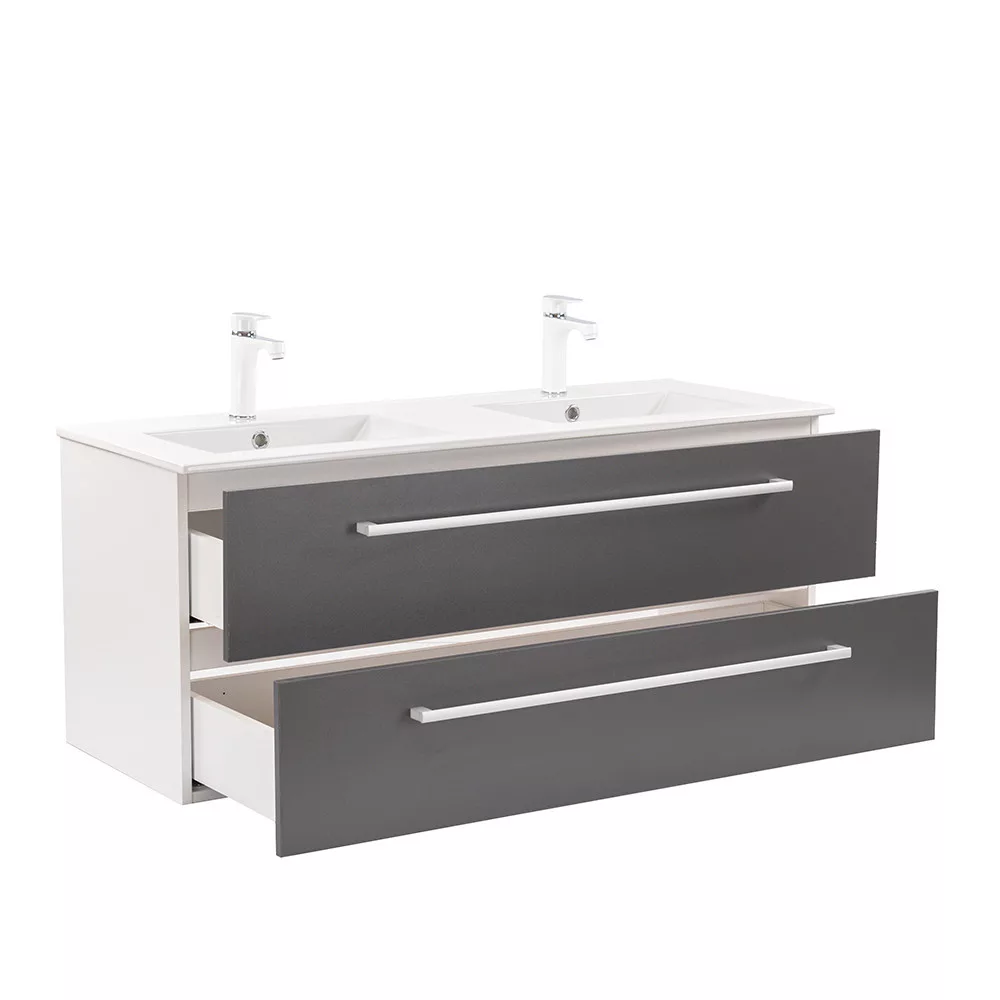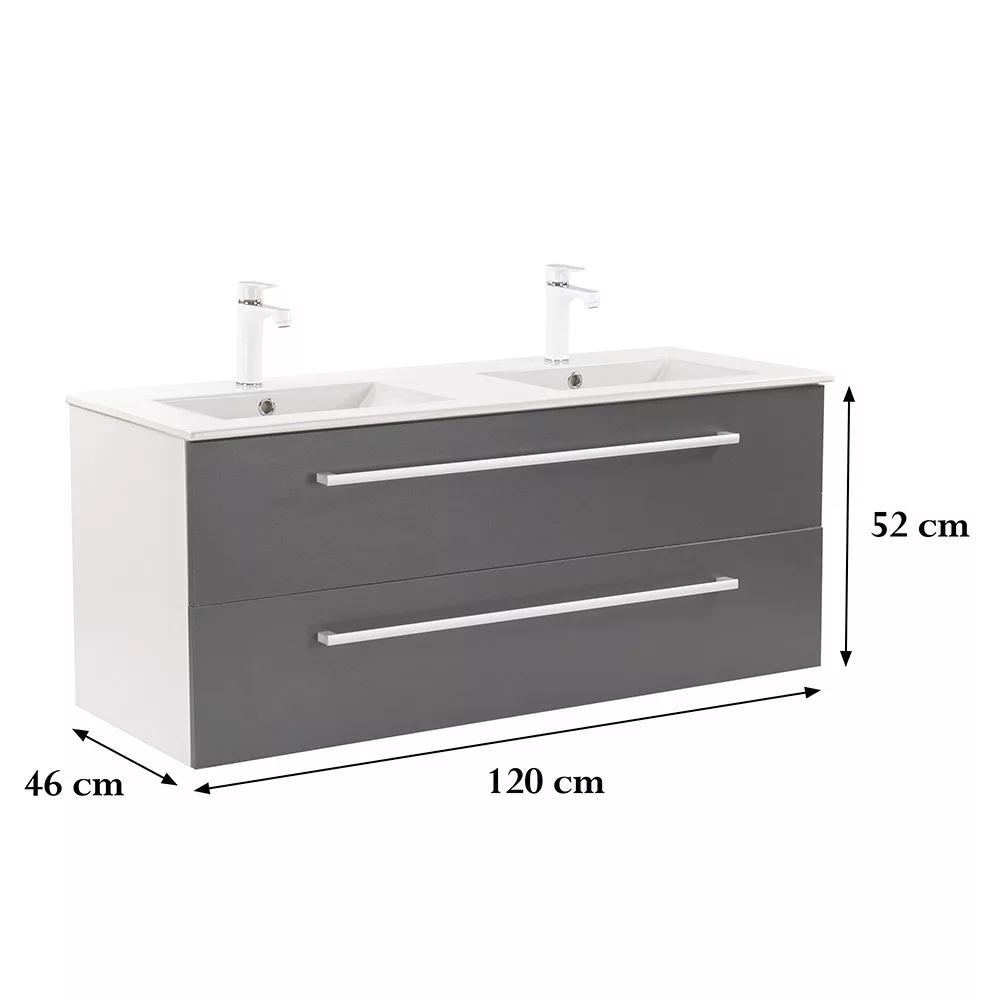 Der Unterschrank Vario Clam 120 ist eine stilvolle und praktische Wahl für moderne Bäder. Seine kompakten Abmessungen machen ihn ideal für kleine bis mittelgroße Bäder. Das Griffprofil aus Metall verleiht ihm einen Patina-Effekt, während das Design in Weiß und Anthrazit dem Raum einen eleganten Look verleiht. Der gedämpfte Schubladenverschluss und das hängende Design sorgen für Komfort und einfache Reinigung, während die hochwertigen Materialien eine lange Lebensdauer gewährleisten.