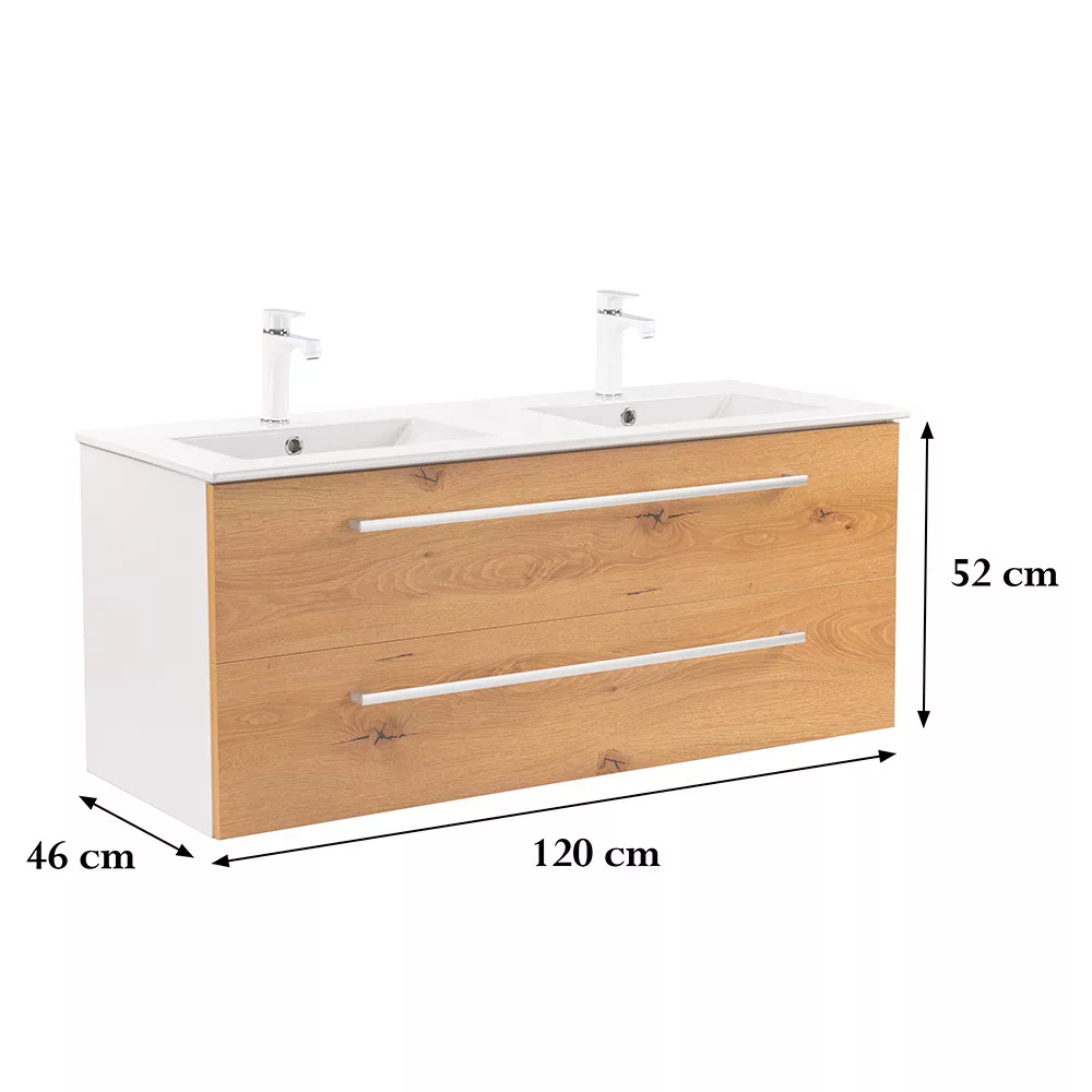 Der Unterschrank Vario Clam 120 ist eine stilvolle und praktische Wahl für moderne Bäder. Seine kompakten Abmessungen machen ihn ideal für kleine bis mittelgroße Bäder, und das Metallgriffprofil verleiht ihm einen Patina-Effekt, während das Design in Weiß und Eiche dem Raum einen eleganten Look verleiht. Das Design in Weiß und Eiche verleiht dem Raum ein elegantes Aussehen. Der gedämpfte Schubladenverschluss und das hängende Design sorgen für Komfort und einfache Reinigung, während die hochwertigen Materialien eine lange Lebensdauer gewährleisten.