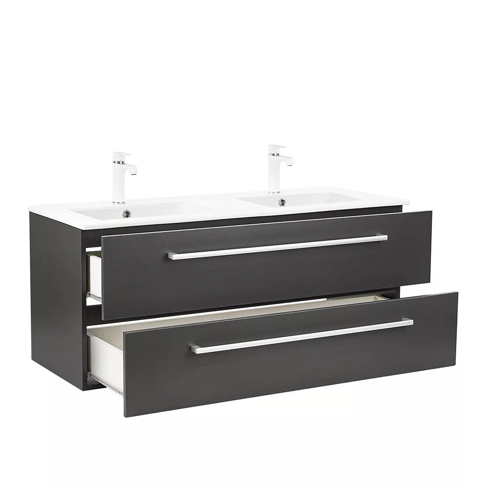 Der Unterschrank Vario Clam 120 ist eine stilvolle und praktische Wahl für moderne Bäder. Mit seinen kompakten Abmessungen ist er ideal für kleine bis mittelgroße Bäder. Das Griffprofil aus Metall sorgt für einen Patina-Effekt, während das anthrazit-anthrazitfarbene Design dem Raum ein elegantes Aussehen verleiht. Der gedämpfte Schubladenverschluss und das hängende Design sorgen für Komfort und einfache Reinigung, während die hochwertigen Materialien eine lange Lebensdauer garantieren.