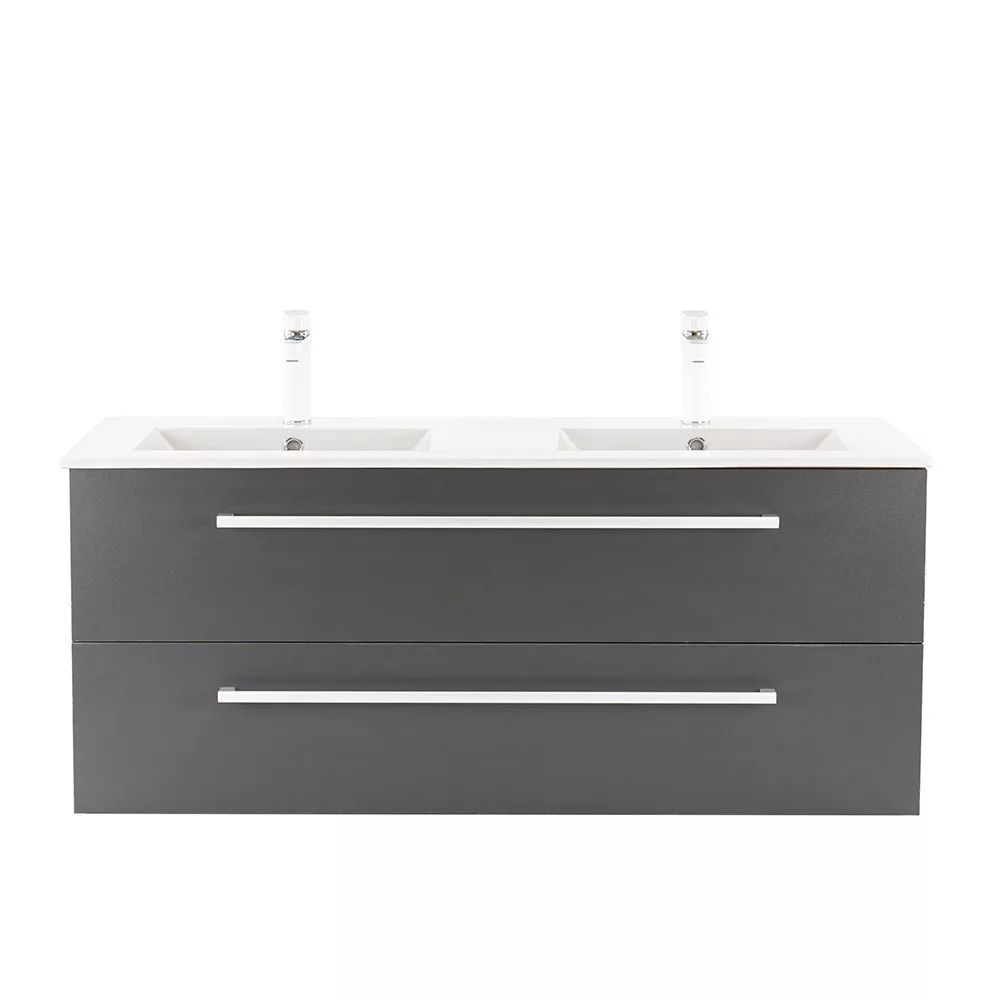 Der Unterschrank Vario Clam 120 ist eine stilvolle und praktische Wahl für moderne Bäder. Seine kompakten Abmessungen machen ihn ideal für kleine bis mittelgroße Bäder. Das Griffprofil aus Metall sorgt für einen Patina-Effekt, während das anthrazitfarbene Eichendesign dem Raum einen eleganten Look verleiht. Der gedämpfte Schubladenverschluss und das hängende Design sorgen für Komfort und einfache Reinigung, während die hochwertigen Materialien eine lange Lebensdauer gewährleisten.